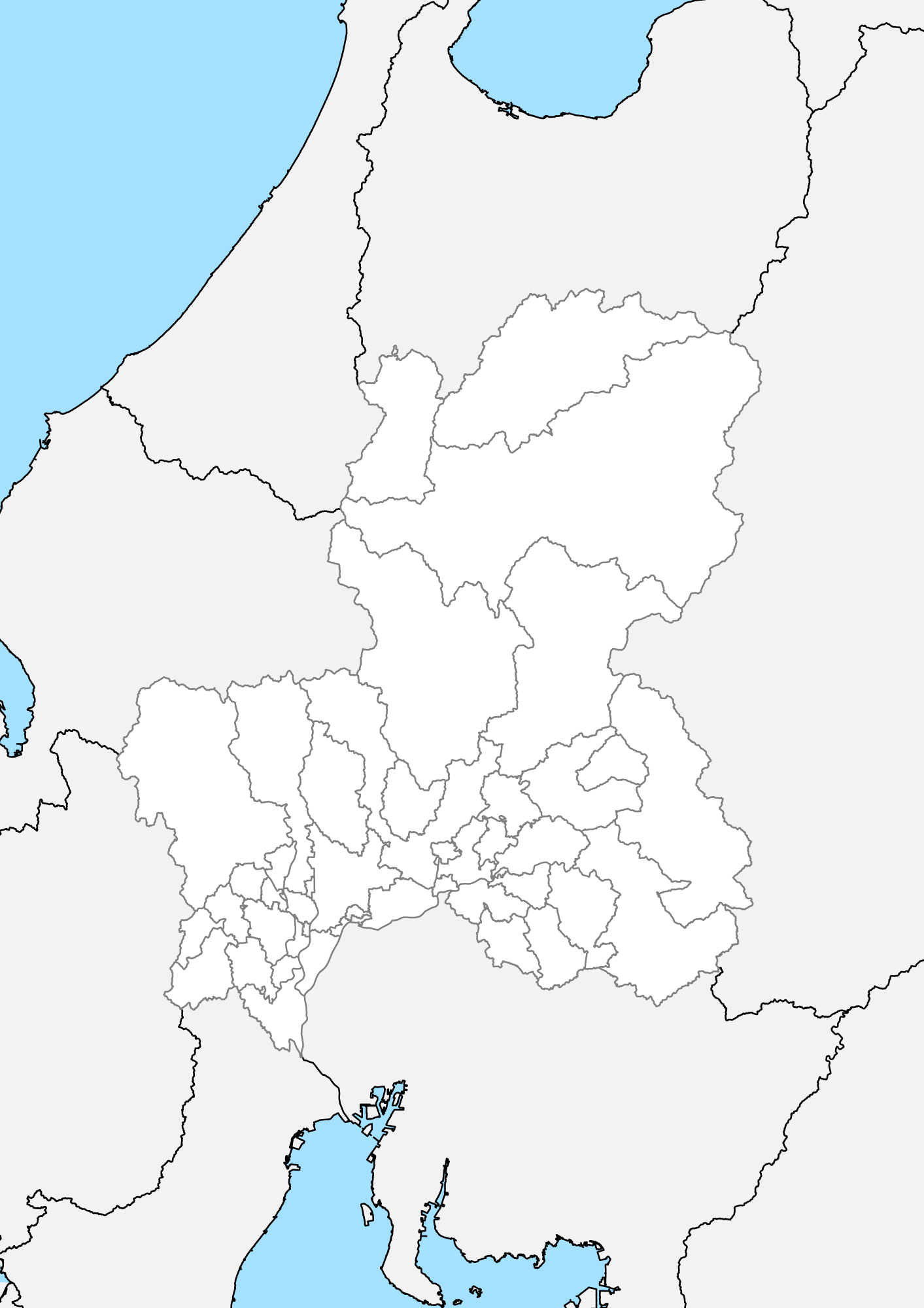 岐阜県 白地図 市区町村界 フリー素材