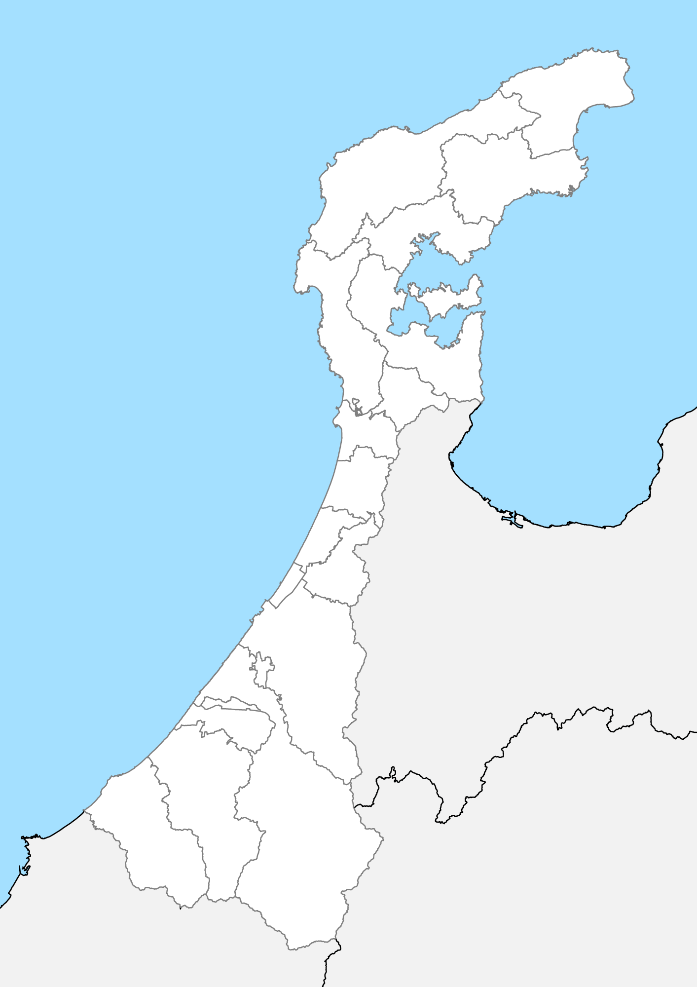 石川県 白地図 市区町村界 フリー素材