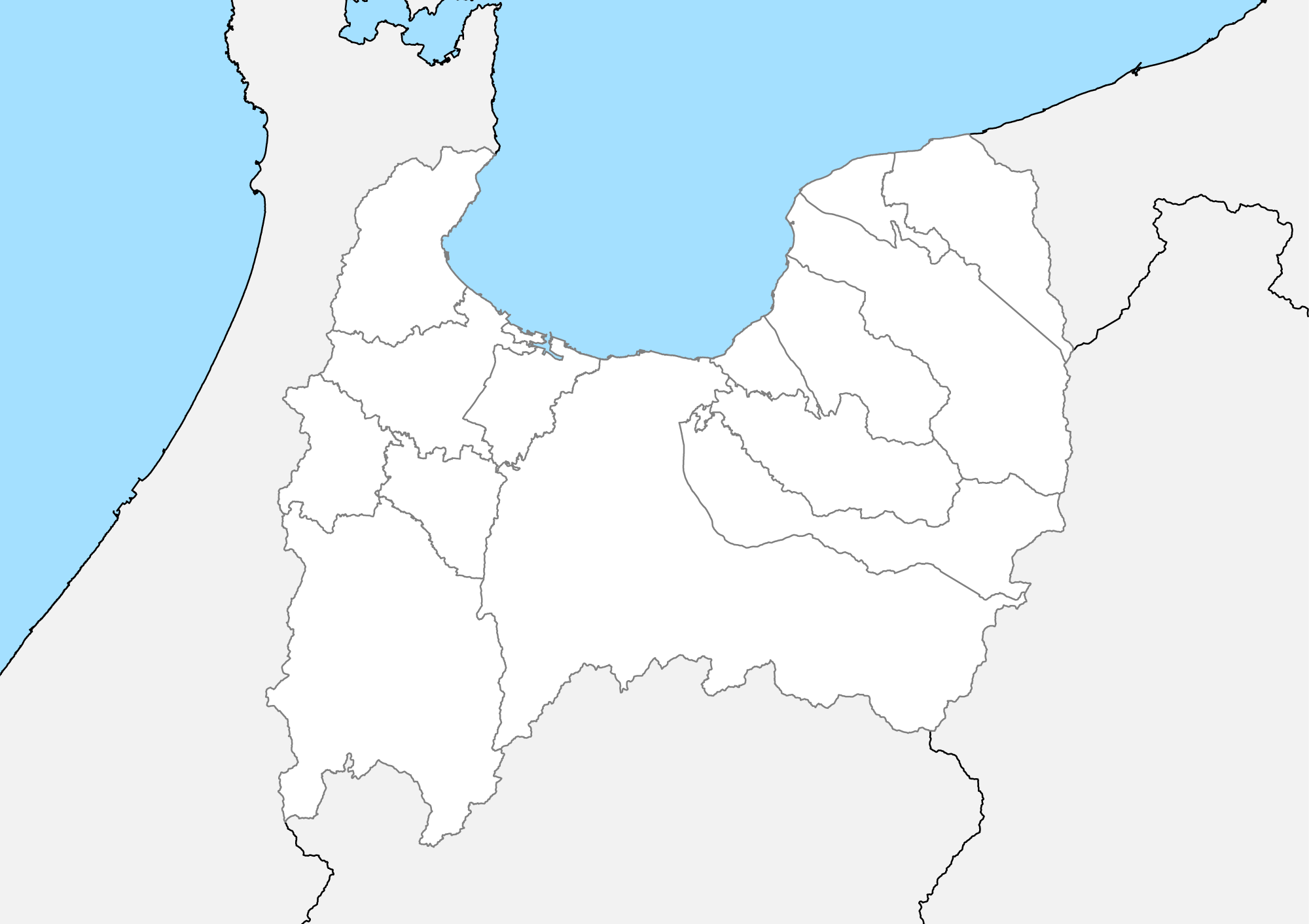 地図には、富山県市区町村界、都道府県界が入っています。(地図範囲は商品画像の通り)